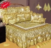 Features: 1) Luxurious 24pcs satin embroidery bedspread set 2)King size: a) bedspread 200x210cm+45cm - 1pc b) comforter 220x240cm - 1pc c) pillowcase 50x75cm+8cm - 2pcs d) long pillowcase 48x180cm+8cm - 1pc e) square cushion case 45x45cm+8cm - 2pcs f) heart cushion 30x30cm+8cm - 2pcs g) plain pillowcase 45x75cm+8cm - 2pcs h) roll pillow 17x45cm - 1pc i) mi-square cushion case 33x43cm - 2pcs j) si-squard cushion case 25x25cm - 1pc k) tissue cover- 1pc l) slippers (three pairs) - 6pcs m) towel - 2pcs4) Upper fabric: 100% polyester satin 5) Inner fabric: 100% polyester 6) Filling:100% polyesterInner packing: 1 strong zipper polybag per set Outer packing: 5 sets/ctn, picture attached Conveyance: 1x20'FCL=400sets 1x40' HQ =960-1000setsThis design sells well in Saudi Arabia and some Middle East countries.We will offer you the most competitive price in the market. Any inquiry are welcome.
